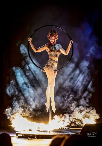 Scarlet Butterfly is an award winning, internationally established aerial dance, fire and cabaret artist. She has gained a reputation for specialising in a unique, innovative form of acrobatic, theatrical, cirque style aerial dance alongside outstanding fire shows. She is particularly accomplished on the lollipop aerial apparatus and her performances are visually stunning combining breathtaking skills with exquisite, glamorous, fantasy inspired costuming. From spectacular flaming headdresses, aerial fire wheels and 'big fire' acts to dazzling acrobatic feats on the lollipop, Scarlet is a highly versatile performer with a variety of acts to offer. Her performances are always graceful, enchanting, powerful and exciting.