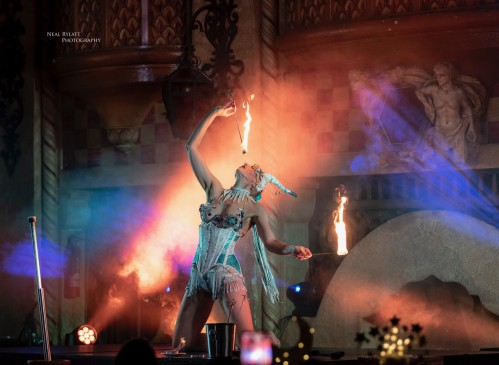 Scarlet performs across the UK and Europe at corporate events, cabaret and variety shows, festivals, weddings and other private events. She has performed for BBC events and on grand stages across the country including Blackpool Tower Ballroom. Whether champagne pouring from a hoop for your guests in an ambient atmosphere, etherial and balletic twirling in a hoop, or a high octane fire performance, whatever your needs, she will bring the right high quality entertainment to your event.