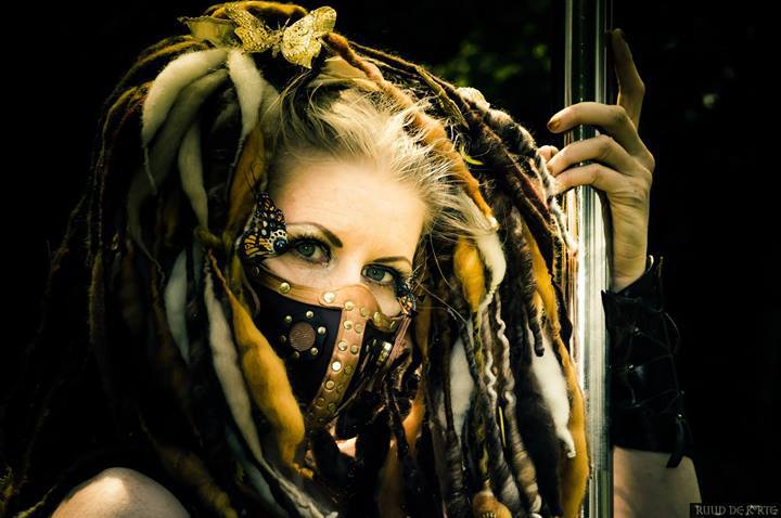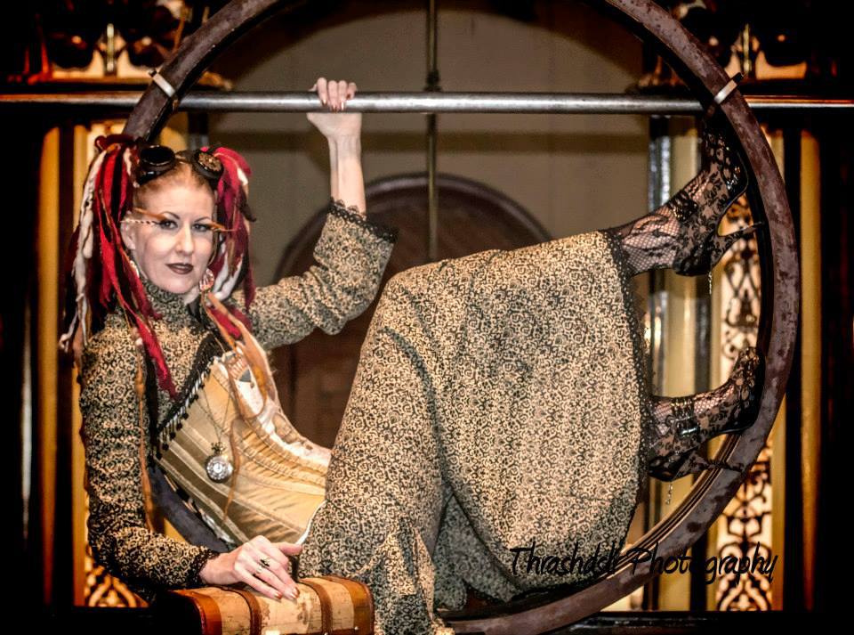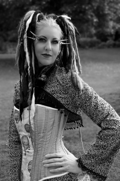 Whilst classically trained in ballet she is also an aerial dancer and performance artist specialising in lollipop lyrapole and also fire. She performs regularly on the cabaret and festival circuits, and enjoys bringing this aspect of creativity into her modelling work. She is very imaginative and creative and enjoys working on concepts and characters for both her modelling and performance work, and she has a flair for costume and outfit creation. She regularly incorporates the use of beautiful fan veils, elaborate costume pieces, exquisite cloaks and long trailing feather bustles into her work. These qualities make her a very flexible and versatile model, and she is able to switch easily between kick ass steampunk imagery, dark and freaky ‘Tim Burton’ inspired artisty, through to whimsical, fantasy and faerie character based expression, as well as elegant, graceful dance based styles of modelling. There is also the added bonus of being able to do all of this on a lollipop lyrapole or with fire, if that is what the photo shoot requires.